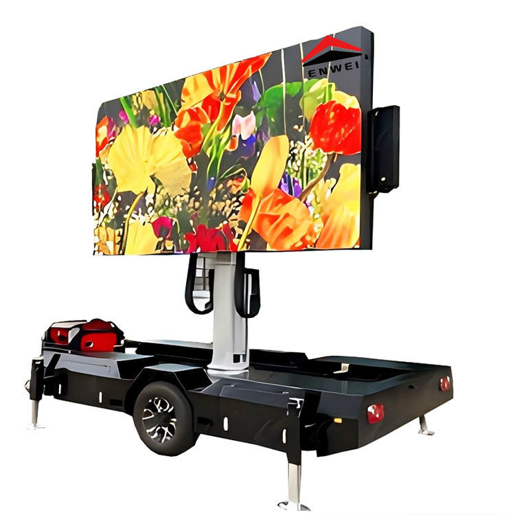 O trailer de exibição de publicidade eletrônica LED possui alta definição e alto brilho, capaz de fornecer imagens claras.Entretanto..., o reboque de exibição LED está equipado com um mastro hidráulico e um sistema de rotação, que permite ajustar a altura e o ângulo do ecrã, conseguindo uma exibição perfeita a 360°. Tem uma forte estabilidade e permanece estável mesmo em ambientes externos.